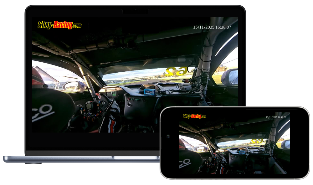 Nous pouvons également ajuster vos paramètres vidéo, mettre à jour votre matériel, ou encore intégrer votre logo, vos couleurs d’équipe ou toute autre personnalisation directement dans le flux diffusé. Vous bénéficiez d’un accompagnement complet : préparation avant l’événement, suivi pendant les roulages, et assistance après les sessions. Avec Shop-Racing, vous disposez d’un système clé en main, surveillé et optimisé en permanence, pour une utilisation simple, stable et professionnelle.